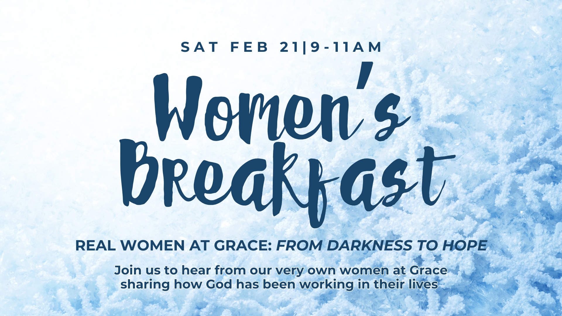 Join us for Real Women at Grace, a women’s breakfast where women from our own church share how God has been at work in their lives. Join us on Saturday, February 21 from 9-11 AM as we explore the theme “From Darkness to Hope”, featuring two Grace speakers. Kelly Wynne will share her journey navigating Lyme disease, and Sian Matwey will tell her story of God’s faithfulness through chronic pain, multiple accidents, and most recently, healing her from paralysis. RSVP below and enjoy a morning of good food, meaningful connection, and encouragement.